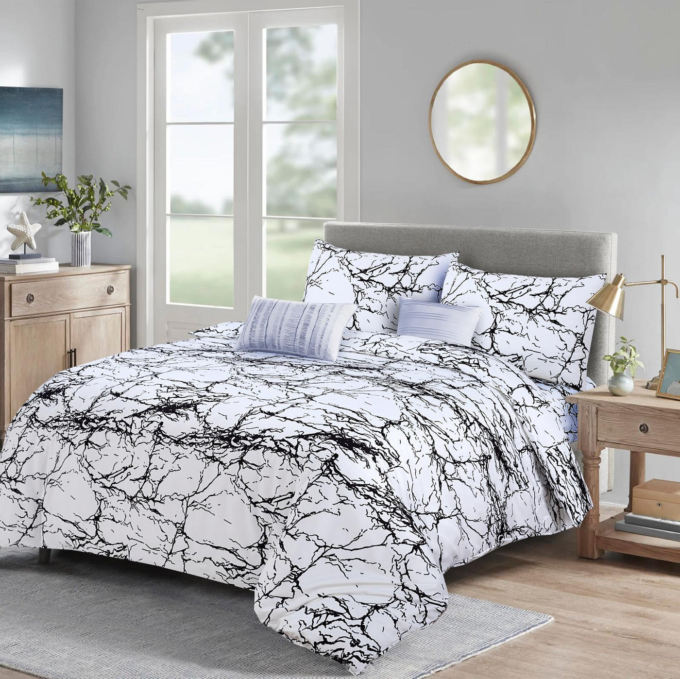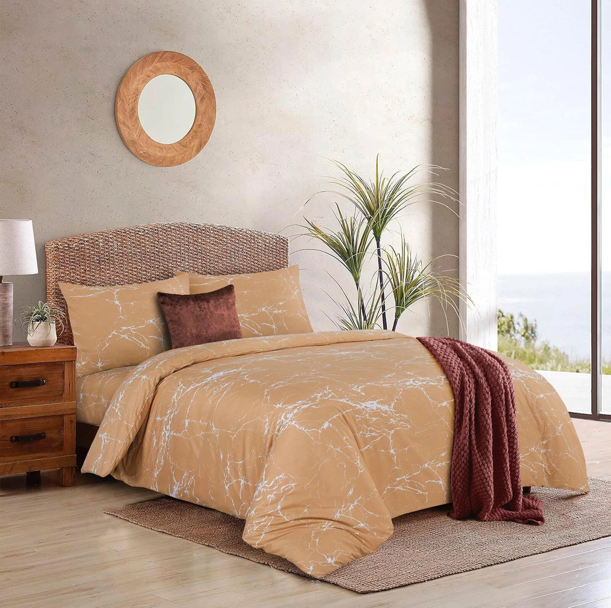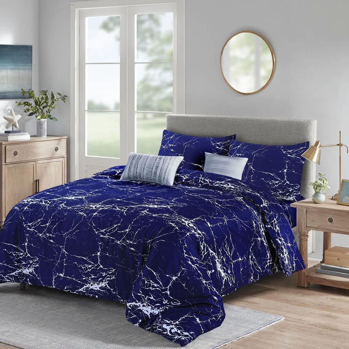 Duvet Cover set 4 piece Bedding Sets with fitted sheet & Pillowcases Marble Pattern - Blue / Single